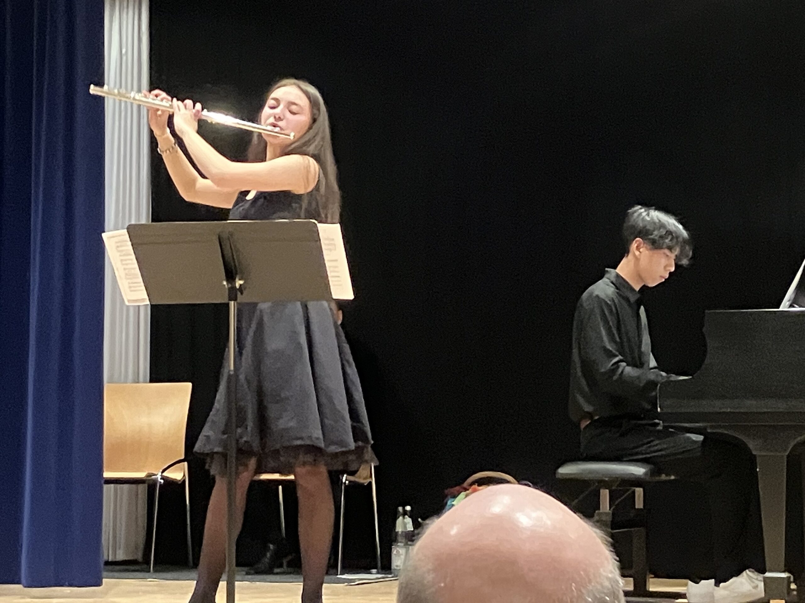 Am 27. November zeigten drei Ausnahmetalente in der Aula des Hallertau-Gymnasiums ihr Können: Ziyi Zhon (Klavier), Lukas Scheider (Bariton) und Anastasia Lytryn (Querflöte). Das neue Instrument der Ukrainerin war der gegebene Anlass. Doch sie spielte darauf bereits, weil es aus Spenden finanziert werden konnte. Also ein Dankeskonzert, bei dem wiederum kräftig gespendet wurde. ek
