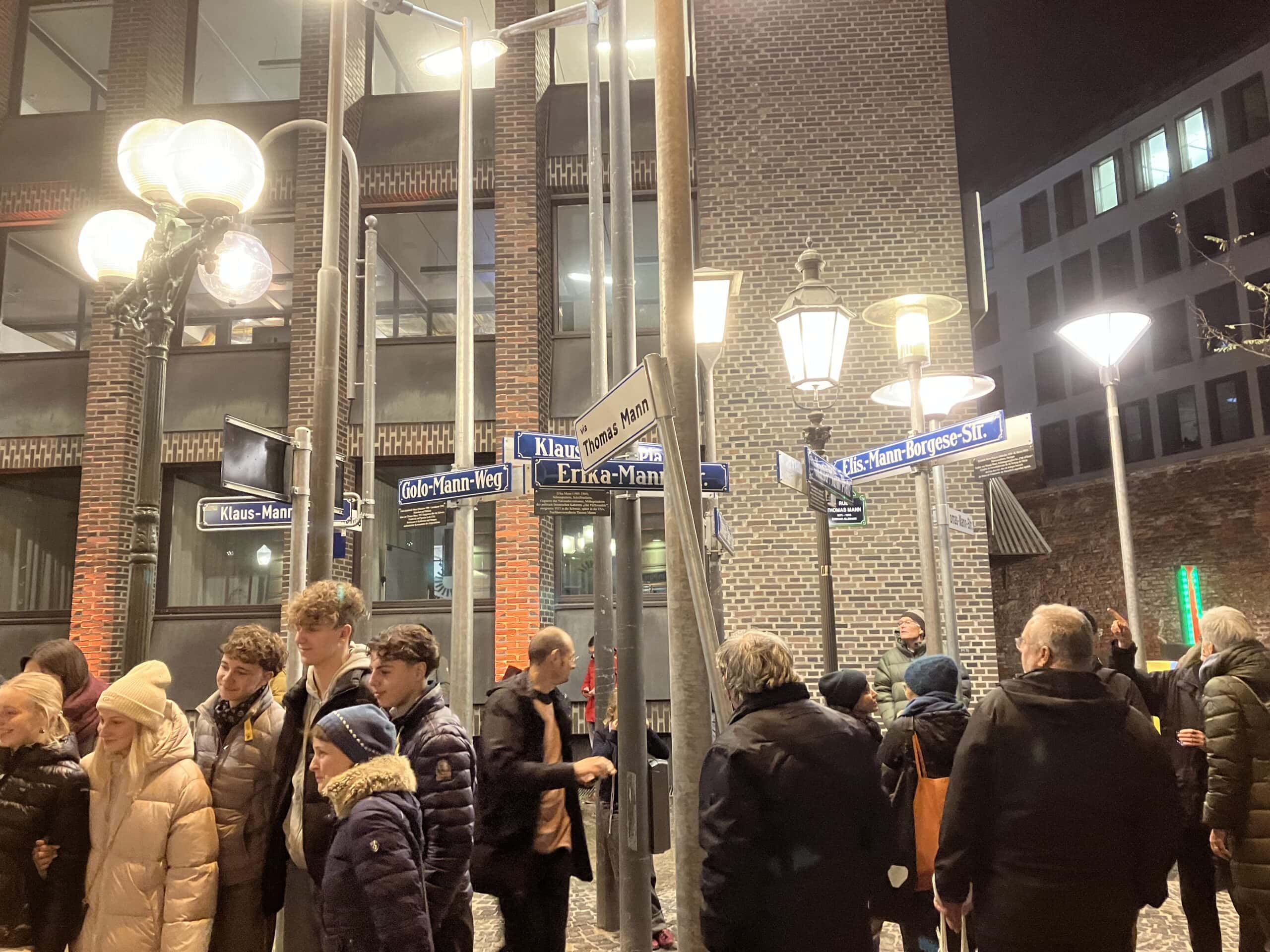 Am 19.Dezember wurde hinter dem Münchner Literaturhaus ein Denkmal für die Familie Mann von Repräsentanten der Stadt vorgestellt und erstmals illuminiert. Der Münchner Akademie-Absolvent Albert Coers sammelte Straßenleuchten von historischen Plätzen der Familiengeschichte und kombinierte sie mit Straßenschildern zum Gedenken an Thomas Mann und seinen literarisch ebenfalls aktiven Kindern. Dies passte gut zum 150. Geburtstag des Literaturnobelpreisträgers in diesem Jahr. Nach über 18 Jahren in München emigrierte die Familie 1933 in die Schweiz und danach in die USA. So finden sich auch zwei Straßenleuchten aus New York und dem Wohnort Thomas Manns in Kalifornien. Der Bezug zu Wolnzach? Die Frau des WA-Verlegers Eugen Fleischmann, Walburga Fleischmann, betreute vor ihrer Ehe als Gouvernante die Mann-Kinder in der Poschinger Str. 1. Das Haus wurde im 2. Weltkrieg zerstört. ek